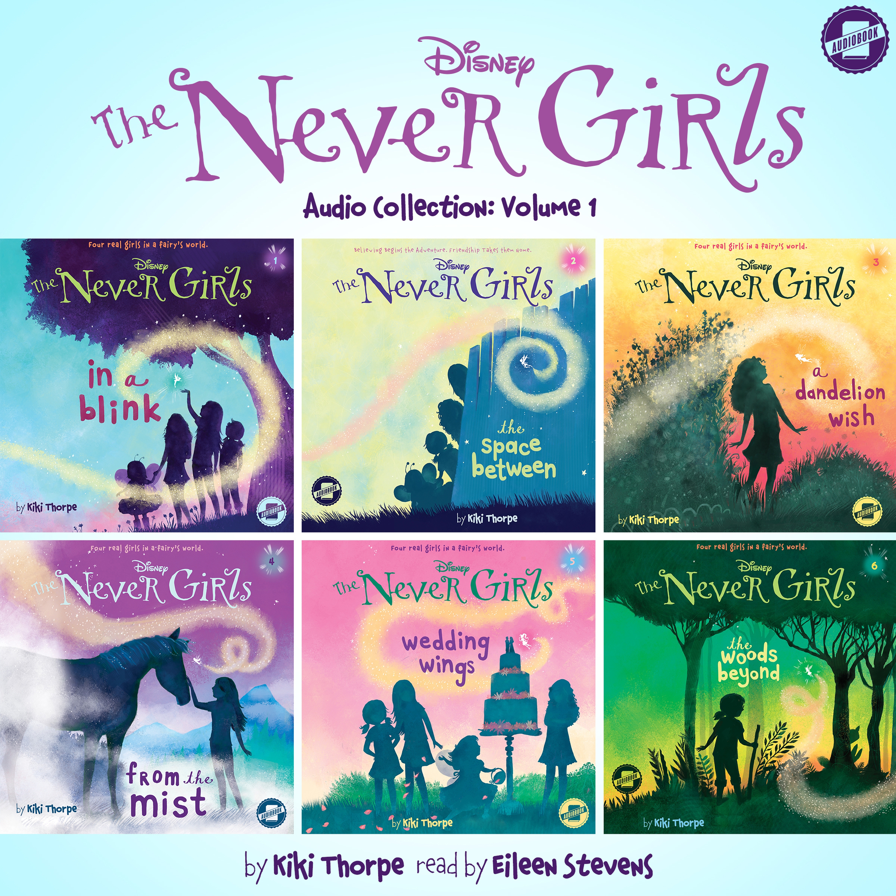 The Disney Fairies star in a magical all-new early chapter book series for kids ages six to ten—the Never Girls! This collection features the first six books in the Never Girls series.Never Girls #1: In a BlinkKate craves adventure and excitement. Mia loves dresses, roses, and anything beautiful. Lainey dreams of talking to animals. Gabby believes in fairies more than anyone. In a blink of an eye, these four best friends all get their biggest wish—they’re whisked off to Never Land, home to Tinker Bell and her fairy friends. The adventure of a lifetime is just beginning! But how will the Never Girls ever get home again?Never Girls #2: The Space BetweenIt’s time for the Never Girls to go home. Lainey thinks it’s goodbye forever, but … is that a Never mouse in her mother’s kitchen? And why can’t Mia find Bingo? Could there be a splinter between the worlds?Never Girls #3: A Dandelion WishKate, Mia, Lainey, and Gabby know how to travel to Never Land through a broken slat in a backyard fence. But what happens when the fence is repaired … with one of the girls stuck on the Never Land side?Never Girls #4: From the MistKate is craving an adventure. She gets her wish when mysterious mist horses arrive in Pixie Hollow and one takes her on a journey through the magical island.Never Girls #5: Wedding WingsGabby is going to be a flower girl in a wedding! But a Never Land fairy hidden in her basket causes big trouble on her big day.Never Girls #6: The Woods BeyondLainey’s day is turned upside down when she’s captured by the Lost Boys while visiting Never Land!